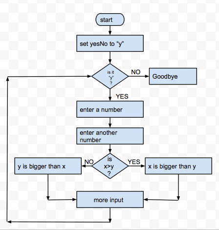 print (y, " is bigger than ",x)            # the comparison is false